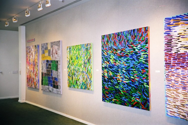 The mid-nineties body of work is characterized by the layered cumulative abstraction of brush strokes with my interpretation of the modern architecture that surrounded my studio in Northern New Jersey and inspired by the new technology, and the urban scene grid bird-eye-view from multiple perspectives and vanishing points that defines the places where we live, work and play. The experimental single brush stoke body of work defined by intertwined abstracted architectural motifs with a spontaneous but rapid execution of painterly expressionist style and equated with a storytelling of the human genius in developing the land to best suit our inhabitant of modern industrial and corporate world that shaped our lifestyle. The cumulative brush strokes are meant to convey my perception of the speed and flux of modern life. My objective was to bring forth the hidden characters of an urban scene painted in a neoplasticism contemporary style.