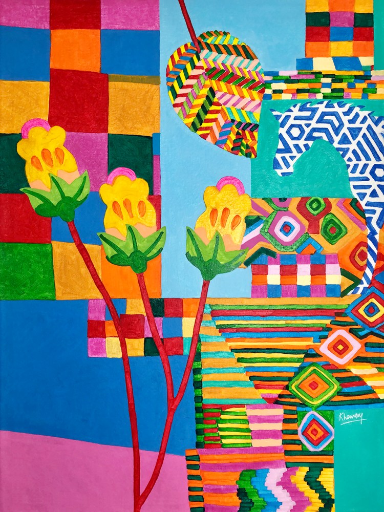 Cuneiform Connection (2025) – acrylic on canvas, 46″x53″