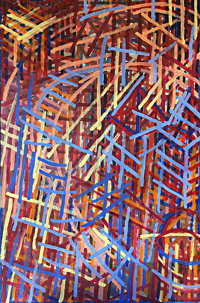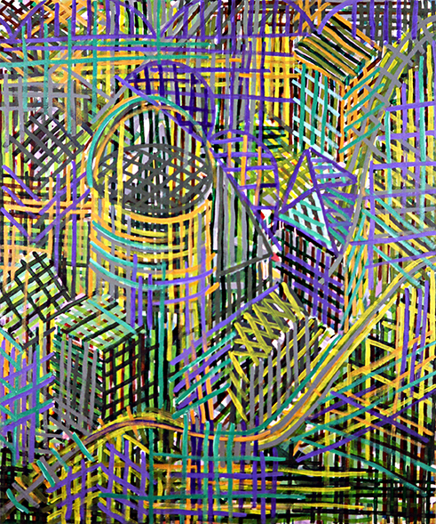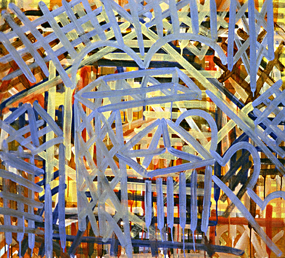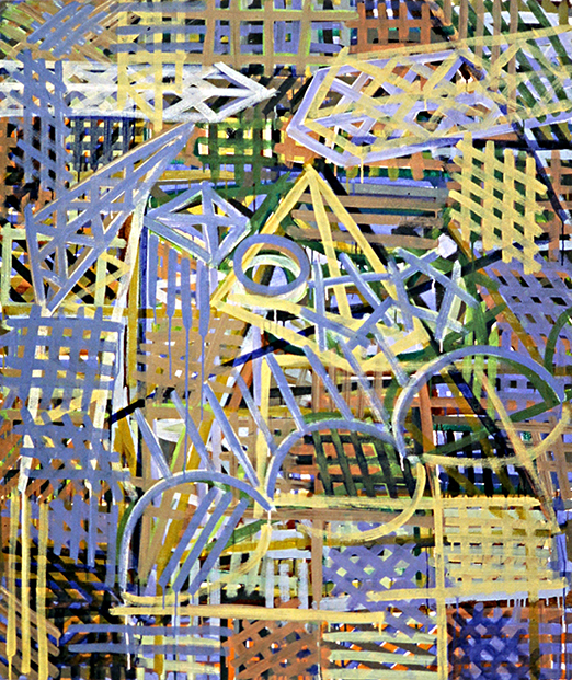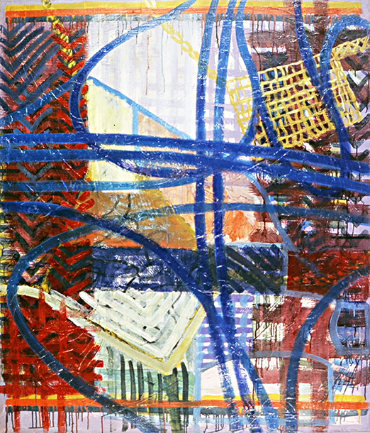 The mid-nineties body of work is characterized by the layered cumulative abstraction of brush strokes with my interpretation of the modern architecture that surrounded my studio in Northern New Jersey and inspired by the new technology, and the urban scene grid bird-eye-view from multiple perspectives and vanishing points that defines the places where we live, work and play. The experimental single brush stoke body of work defined by intertwined abstracted architectural motifs with a spontaneous but rapid execution of painterly expressionist style and equated with a storytelling of the human genius in developing the land to best suit our inhabitant of modern industrial and corporate world that shaped our lifestyle. The cumulative brush strokes are meant to convey my perception of the speed and flux of modern life. My objective was to bring forth the hidden characters of an urban scene painted in a neoplasticism contemporary style.