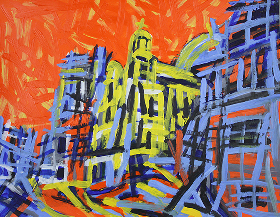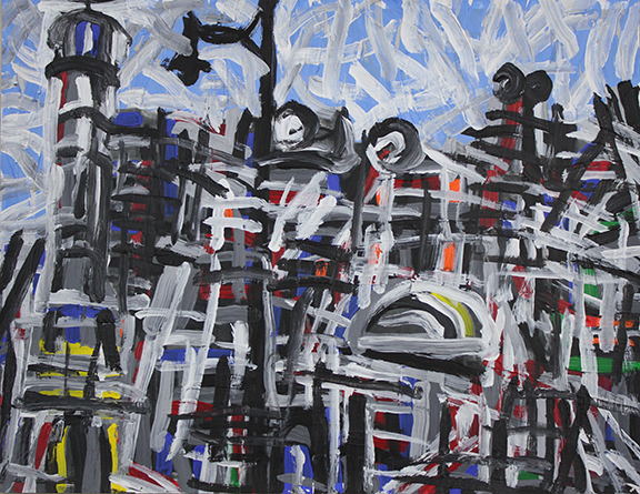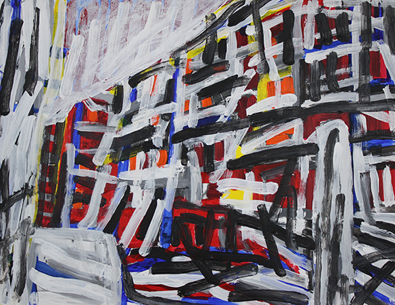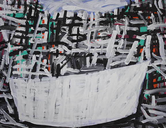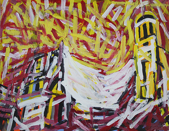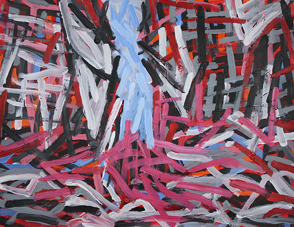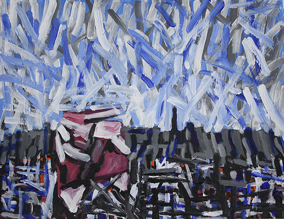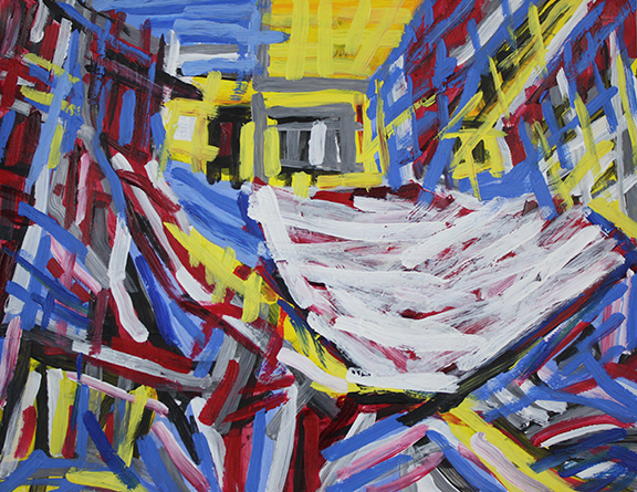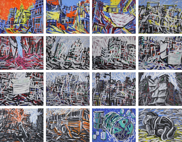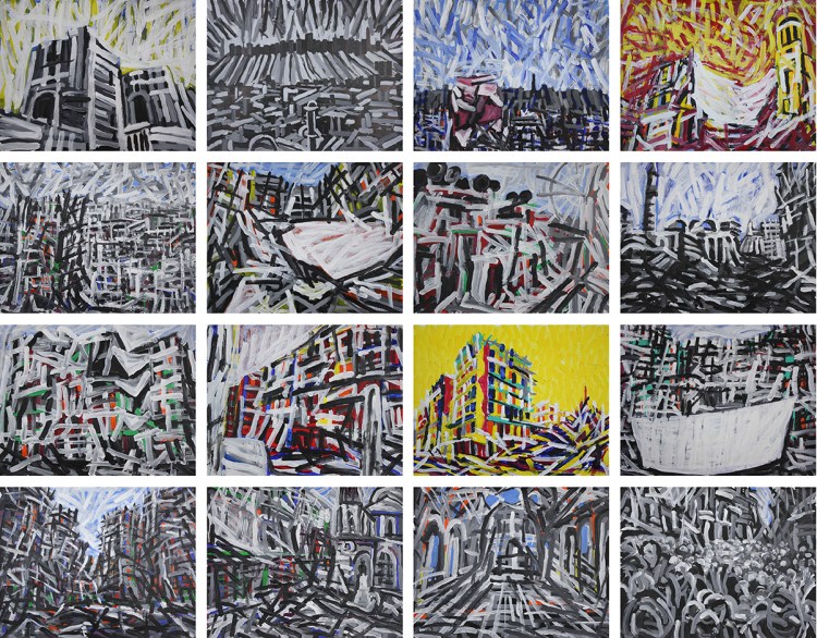 The Syrian disruption series is best viewed in athe ssemblage of 6 or more paintings to experience the depth, sensitivity of the subject, and the process when viewed up close will enhance the viewer’s experience by the visibility of broken lines painted with a repetitive, cumulative, impasto acrylic “weaving dynamic” painting process.
